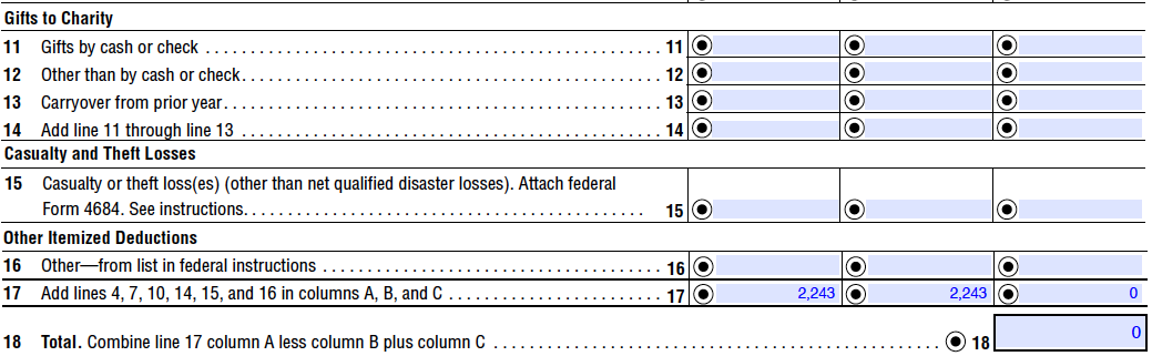따라서 "itemized deduction (항목 공제)"를 선택해야만 하고 "State tax (주세)"를 얼마 내었는지 보고하게 되는데, 이 때 돌려받은 주세가 있을 경우 그 금액이 소득이 되어 이를 보고해야 합니다.