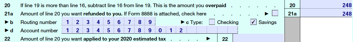 20. If line 19 is more than line 16, subtract line 16 from line 19. This is the amount you overpaid.
